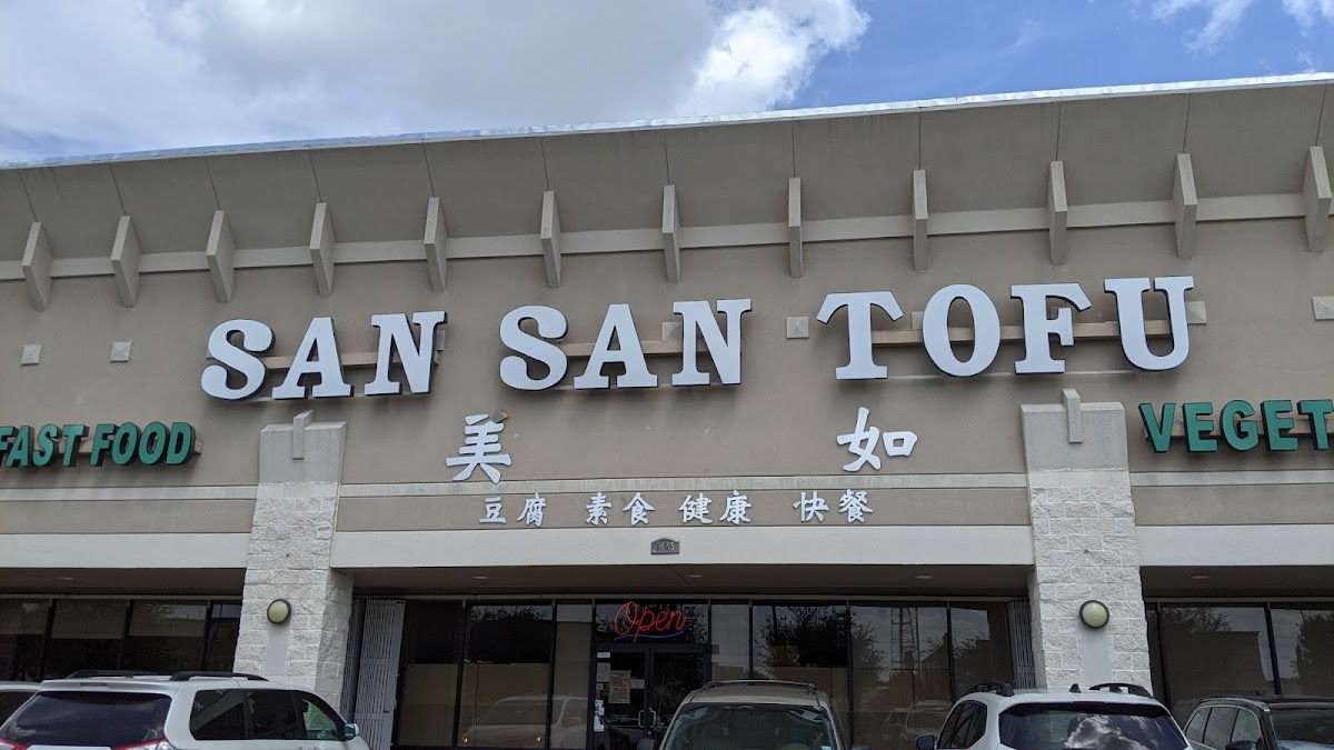 For a small grocery store, they have a lot of options to choose from to highlight your veg dishes if you choose to cook. Occasionally, I follow and watch some of my favorite vegan YouTube bloggers recommend certain items to add flavors or proteins to their meals to enhance the quality. Most of those items I spotted in San San Tofu. To name a few: veg bacon slices, drumsticks, fish, ham, mushroom seasonings, veg oyster sauce, veg rehydrated meats, veg fish sauce, and the list goes on. What, I enjoyed from here was the handmade veg meats spring rolls that they sell near the registers. The veg shredded beef with the peanut sauce has to be the best that I've ever tried. Most places strictly sell tofu spring rolls for the veg option or just veggies (which sucks since the effort isn't there), but not at San San Tofu, I love their creativity. I don't know about you, but I've found it hard to find an Asian restaurant that has stellar peanut sauce for spring rolls, but at San San Tofu, it was perfect. Not too much peanut flavor, not overly sweet, but just right. It isn't too thick or liquified. It's a happy medium in between. Not only that, but the spring rolls are fat in size and so flavorful! Even the veg meat has seasonings to it. I swear, I did not think that they would even marinate the veg meat, but they did. Most places would just add barely cooked or sauteed tofu to the rolls and the taste would be so off that you would have to add more sauces just to get that flavor consistency. The last time, I did purchase the veg bacon slices and I noticed that it is the same brand that Spiral Bakery (in the DFW area) uses. It was very simple to prepare. I just let the veg bacon thaw out in the sink for an hour (or shorter) Then, when I was ready to construct the BLT, I added it to the veg BBQ sauce that I bought as well from San San Tofu and placed it into a medium heat pan. It cooked it right up and it even gave off the crispiness of pork bacon minus all the fat of animal bacon. The drumsticks do look similar to the ones that Pythagoras vegan restaurant in Sugar Land has on the menu. This grocery store is pretty much a haven for me since I am a veg. The prices are significantly cheaper than Whole Foods and Sprouts. You can buy veg ham slices here which would last you a lot longer than what Target, Kroger, and HEB tofurky brand packs have. Instead of purchasing dehydrated veg meats from Amazon, you can pick them up at San San Tofu, they have a whole aisle dedicated to that. Oh, and let me mention this, they even sell veg jerky! In so many flavors, which is 100% more affordable than Bucees', any service station, and health food store combined. I wouldn't sleep on this place and I see why the parking lot is packed. I can't speak on the restaurant part since I did not frequent it. I was more intrigued with grocery selection.
