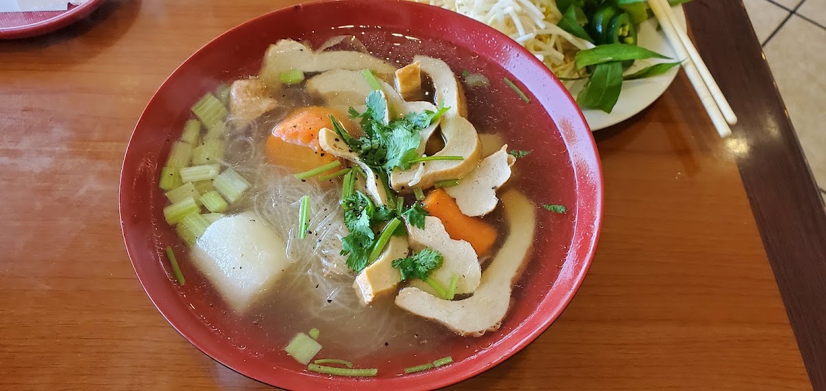 I have been to San San Tofu 山山豆腐 many times to pick up vegetarian groceries few years ago. Just recently, my friend Cathy wanted to show a group of people that vegan dim sum exists in Houston Chinatown. This is not a fancy restaurant nor with a full service. So, don't ask much, just look. As I walked in, grocery store was the first thing I see. Walk towards the left if their restaurant. Employees are very friendly. But not everyone speaks fluent English. So, be patient. One side of food warmer is for lunch box. Next one is the dim sum display. Further, the restaurant cashier is at the end of the line. You can order banh mi or noodles or anything from the menu that is not on display. Food has gone up due to inflation, this is nothing new across the country. So, the two-item and three-item lunch is really reasonable. I ordered some dim sum and asked for a knife to cut them for sharing. They gave me a pair of scissors instead. Three pieces of any type of Dim Sum is $5.50. All vegan. Don't complain there is not meat. Even though they have chicken and beef on the menu. I also ordered Bún bò Huế with vegetarian beef. Sigh... The "beef" is flavored textured soy protein slices. The display looks like the real thing. Vegan version of real thing actually tasted pretty good. Don't overthink what the real thing tastes like. If you want fresh vegan dim sum, best to come before noon. You'll get the real taste of San San Tofu.